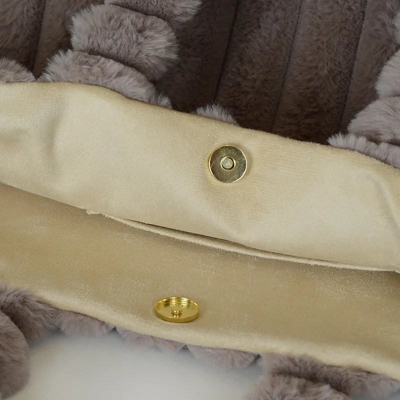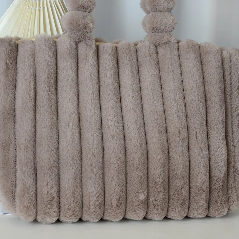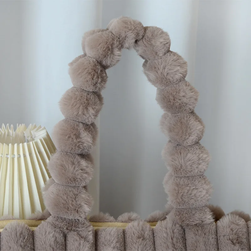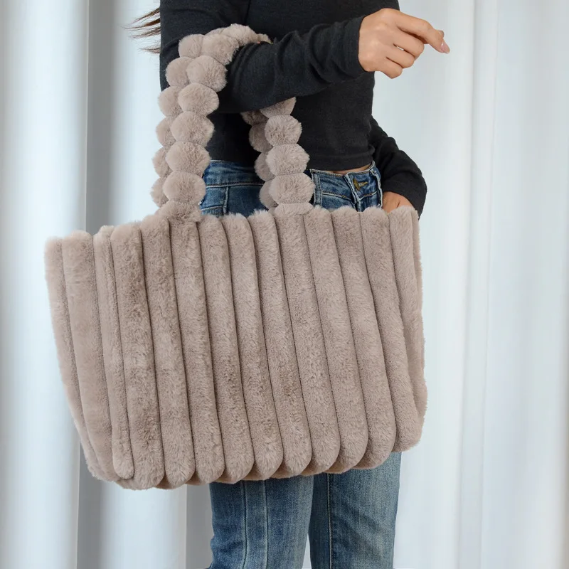 Autumn Winter Soft Plush Tote Bag Stylish College Student Shoulder Bags for Women Handbag with Leather Material Polyester Lining