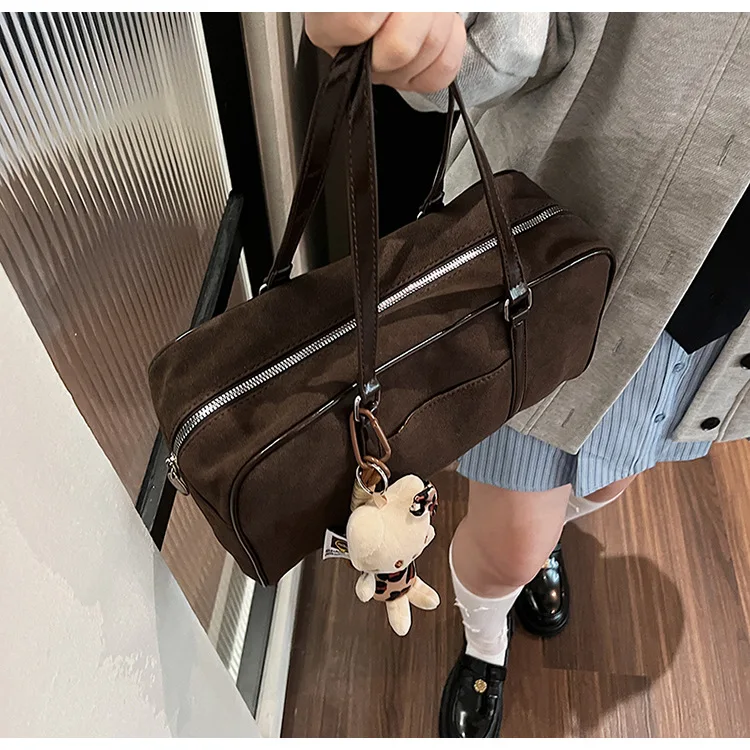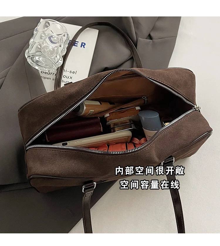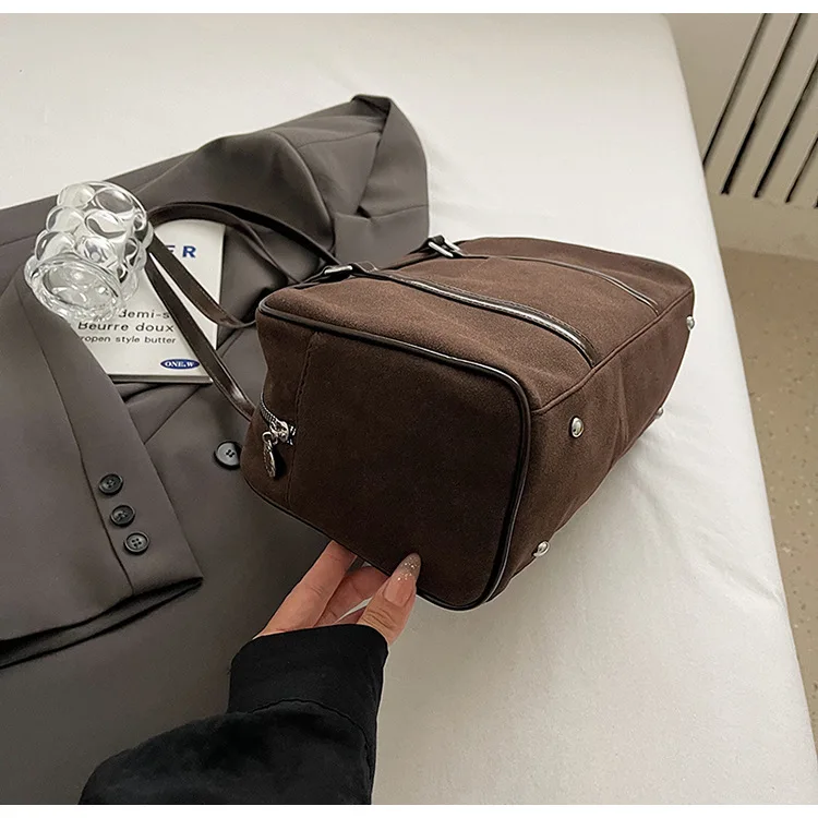 Casual Large Capaci Suede Bag Women 2025 New Autumn and Winter Retro Brown Commuter Shoulder Bag Pillow Bag Purses and Handbags